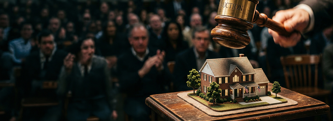 An auction is a public process in which property is sold to the highest bidder, usually with limited negotiation and within a short time frame. Buyers are required to register for the auction and review the terms and legal documents beforehand, as a successful bid creates a binding sale. Once the auctioneer’s hammer falls, the sale is final.