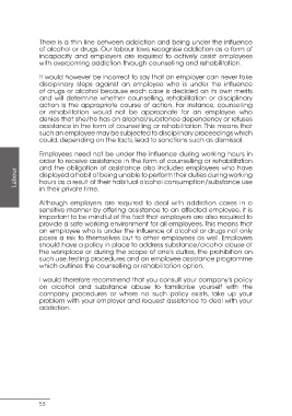 of alcohol or drugs. Our labour laws recognise addiction as a form of